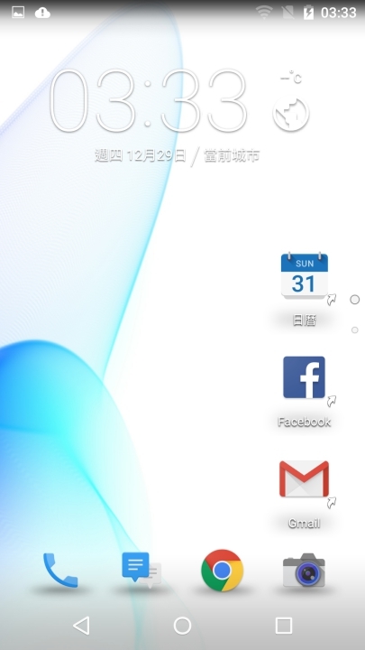 來看一些基本的畫面,出廠預載的軟體可說基本且夠用,像是Google許多好用的軟體,例如Chrome、Gmail、Youtube等,還有Facebook、影片播放器、語音記事、天氣預報、手電筒等等,基本功能面很齊全