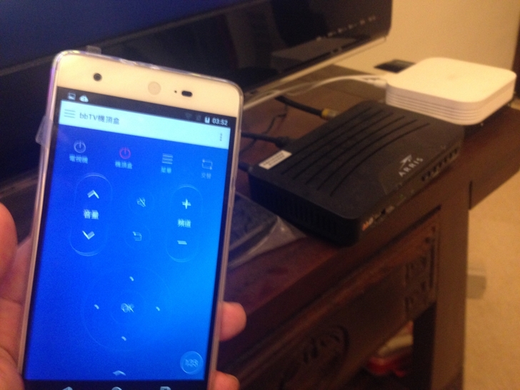 玩了一下內建的遙控器功能「酷控」,記得以前就在網路上看到過,現在自己玩過後才發覺好好玩,家中奇美電視有對應到,然後目前看的數位第四台機上盒也可以控制,不過房間裡的禾聯冷氣不知為何沒反應,所以有些電器可能還是會無法控制,不過小弟相信日後應該會加進更多的型號。