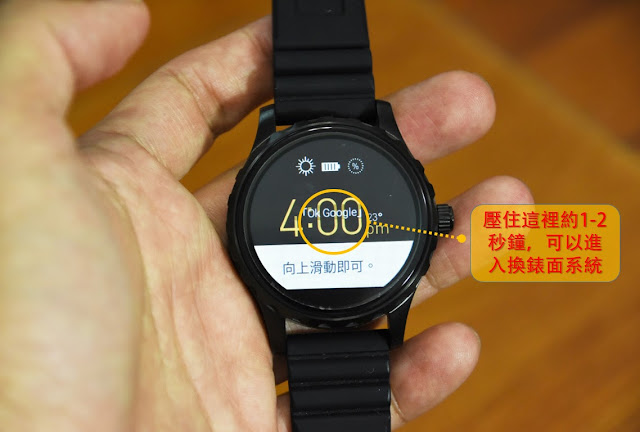 ▼ Fossil Q 按住錶面螢幕的中央約 1 - 2 秒就可以進入錶面中間。