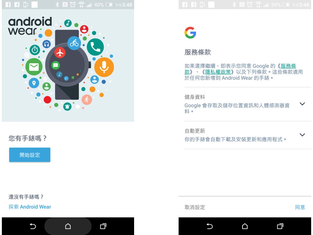 ▼「Android Wear」安裝完後開啟時就會開始設定的過程了,如下圖。