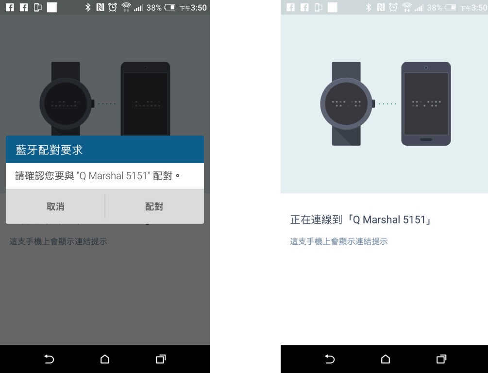 ▼ 進行配對時,Fossil Q Marshal 也會同步顯示資訊。