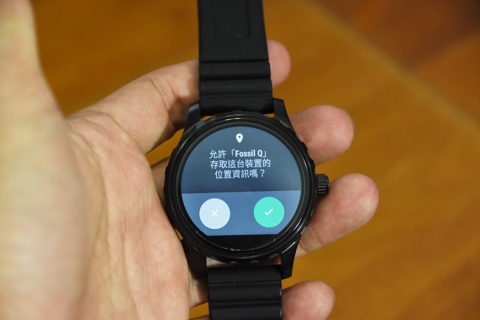 ▼ Fossil Q Marshal 的所有程式設定完成並和手機同步後,會問是否要存取 Fossil Q 的位置資訊,這時點選打勾就可以。