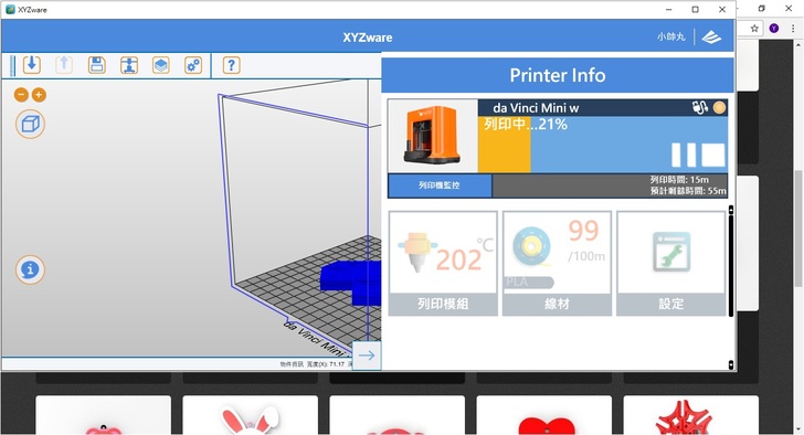 XYZware Pro 在切片 監控 列印都可以一個軟體就搞定.