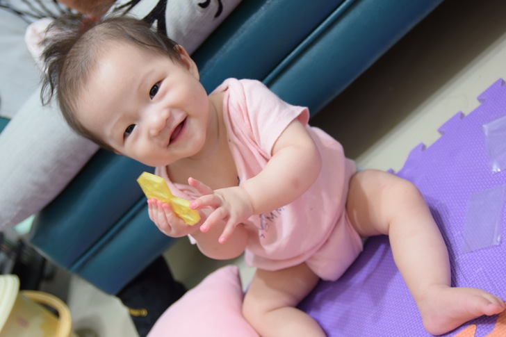 妹妹 皮小C 收到愛心也很開心喔,正值口腔期的 皮小C 迫不及待就想要嘗看看, 唉