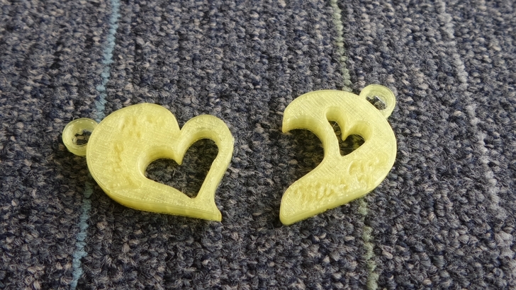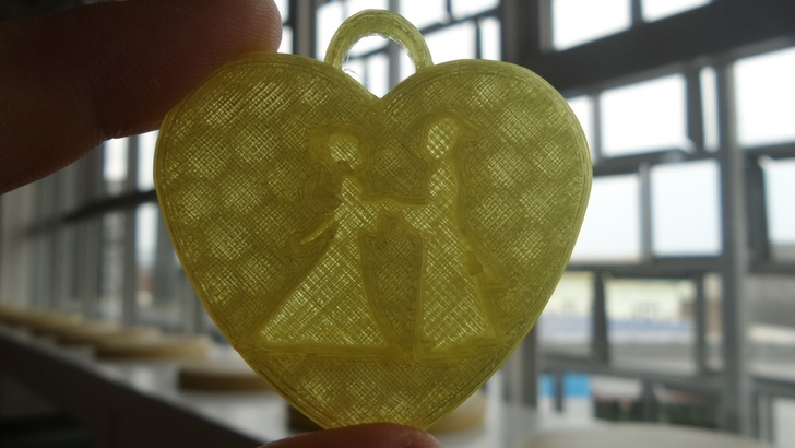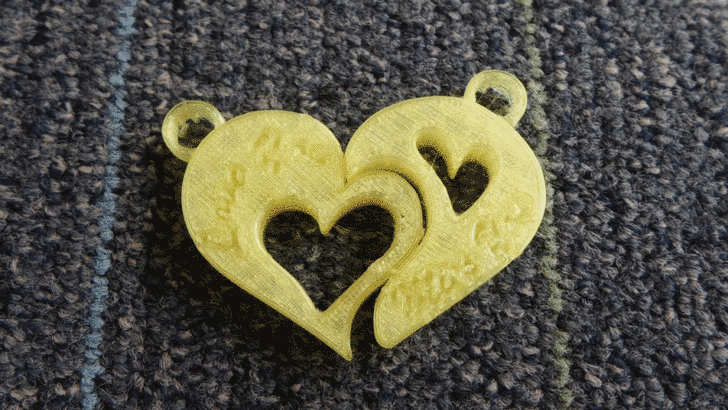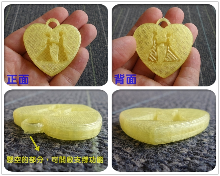 【▼】可掛於胸前的七夕愛心,牛郎與織女的形狀清楚可辨,懸空的掛環部分,建議可開啟XYZware軟體的支撐功能,讓列印不會潰散掉。