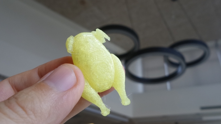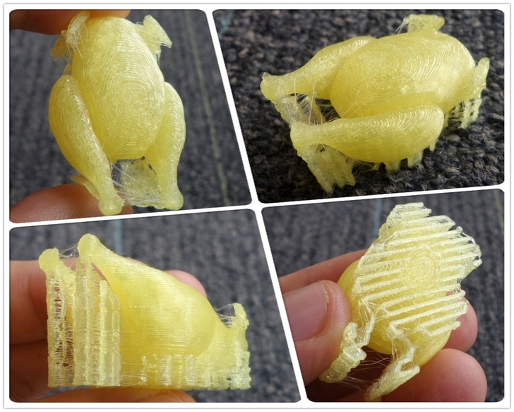 【▼】冬天到了,來吃個烤雞吧!列印數據為標準外殼、輕量的3D密度、列印厚度0.3cm,由於烤雞屬不規則形,所以一定要加入支撐,不然有87%的機率會列印失敗,支撐雖會浪費些許的耗材,但絕對比失敗重印還來的省,您說是吧~