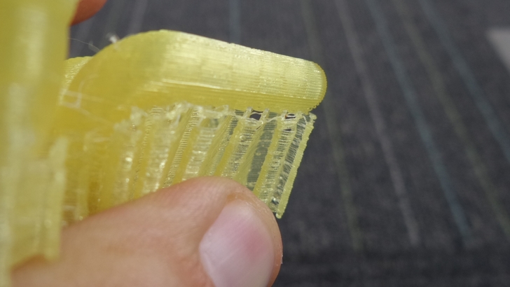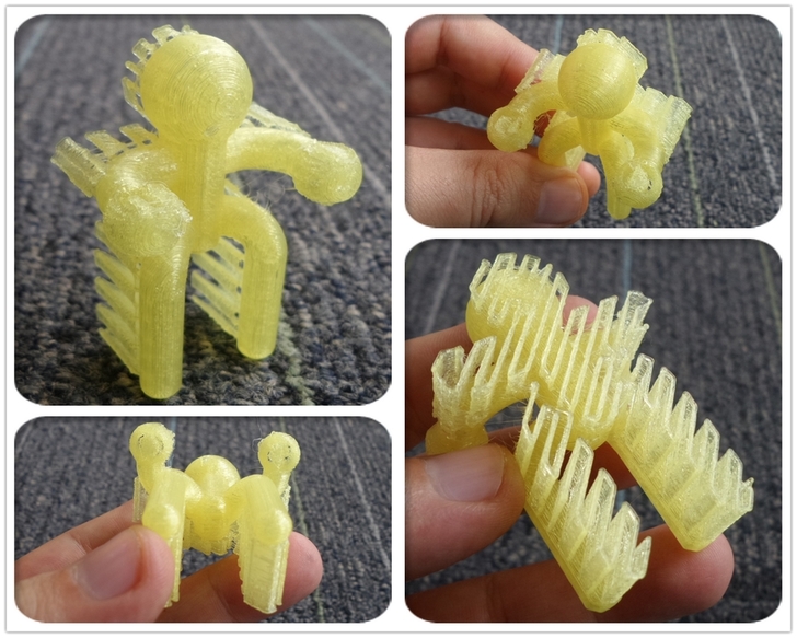 【▼】支撐的列印不會像作品內部填充那麼密實,所以只要輕輕一折就可拆下,不會傷及原本的作品。