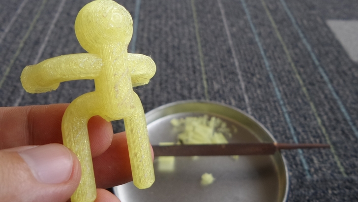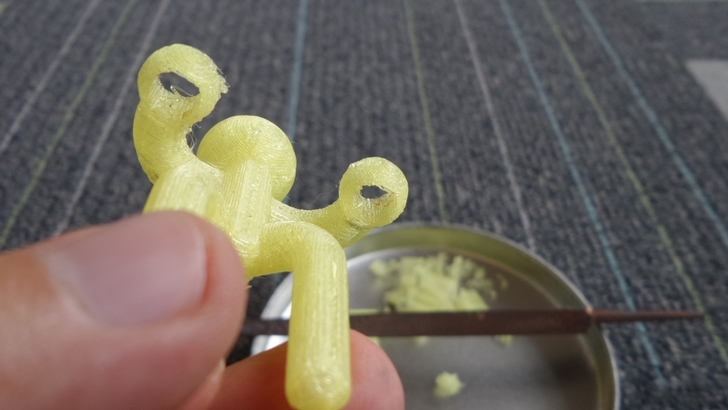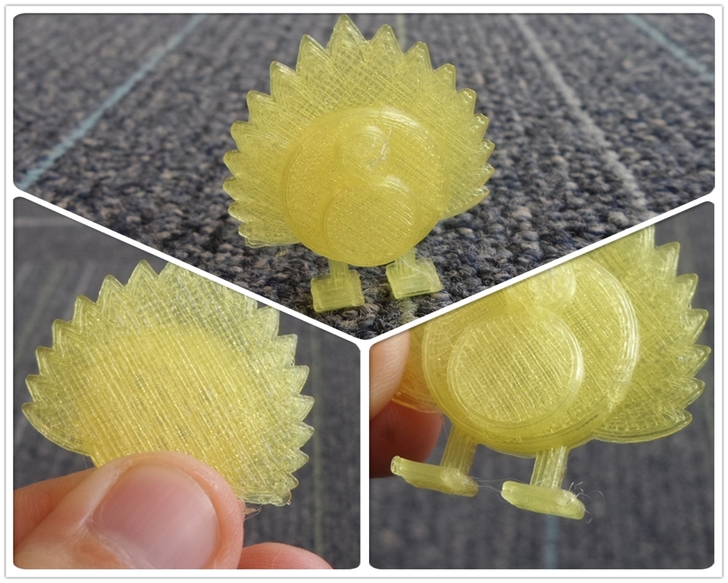 【▼】另外像站立的人像,由於有一邊的手是懸浮的,忘記添加支撐,所以有部分列印潰堤,腳柱亦有同樣情況,不過潰堤的情況較少。這不是da Vinci Mini的問題,用哪款3D列印機都會出現類似問題,這是使用者列印設定的問題,所以3D列印才會有所謂的列印數據供參考,這部分XYZprinting作的特別不錯。