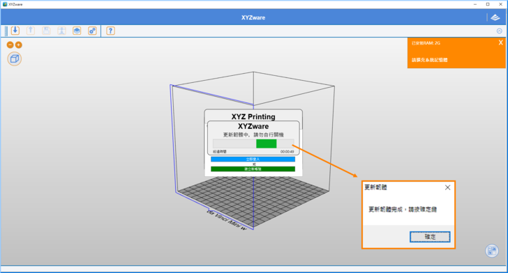 【▼】韌體更新完成後,建議將XYZware關閉後再重開一次,XYZware第一次進入會需要連線註冊,只要註冊過後,之後就不連上網也可使用。