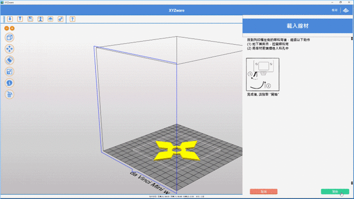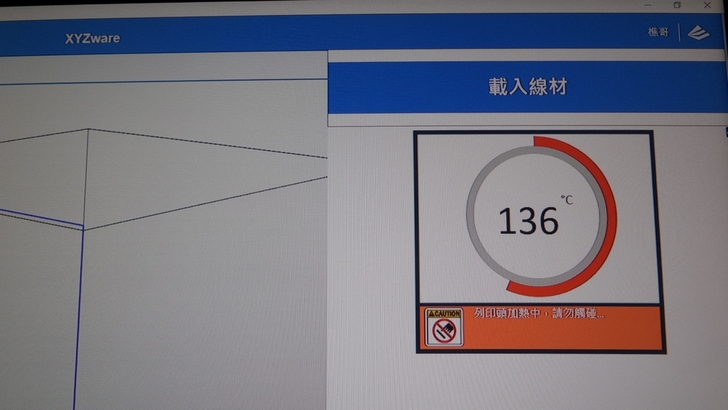 【▼】完成硬體設置後,就是軟體的設定,這邊需透過專屬列印軟體 XYZware來載入線材,載入線材會對列印頭加熱,會升溫接近200度C,所以操作時一定要小心。