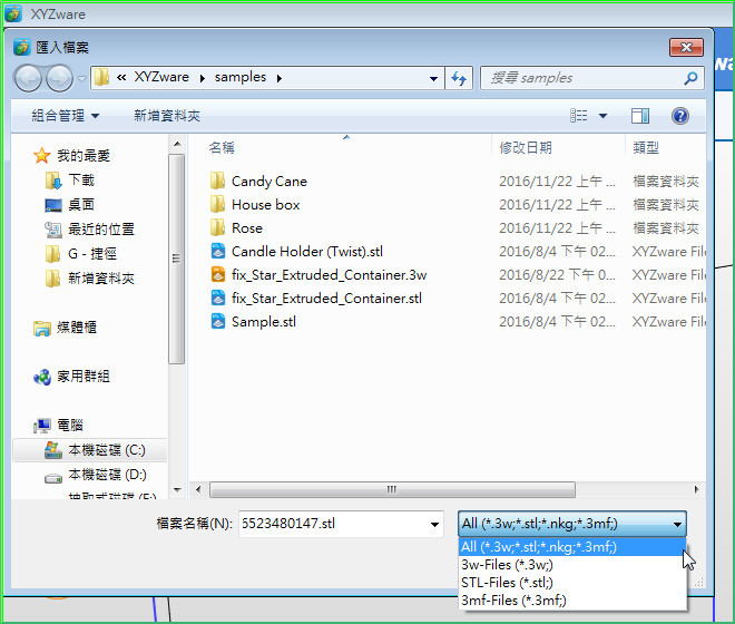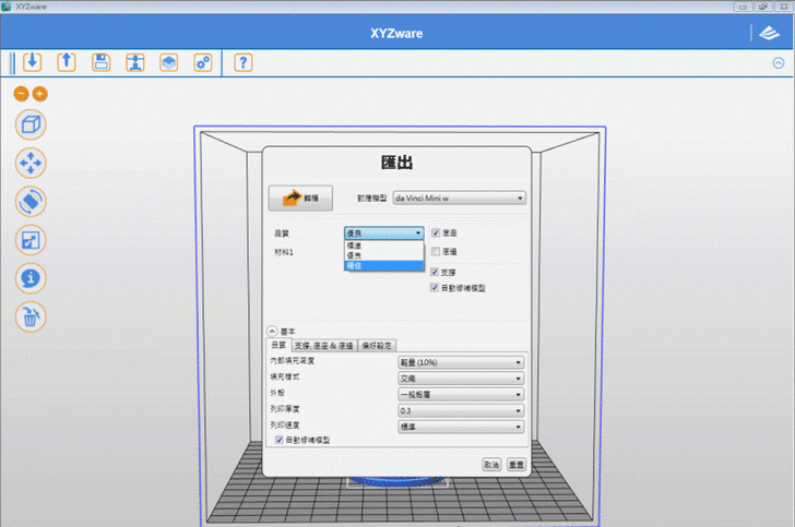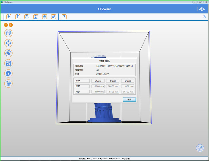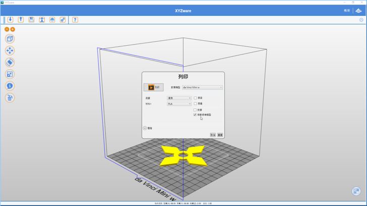 【▼】列印的過程中,只要檔案有傳進印表機,就可以繼續在XYZware操作,XYZware支援匯入的檔案附檔名有3w/stl/nkg/3mf,都是常見的檔案格式。