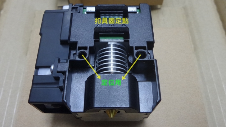 【▼】而在噴頭背面部分,有扣具固定點與兩個凹槽的定位點,能與da Vinci Mini主體上作結合。