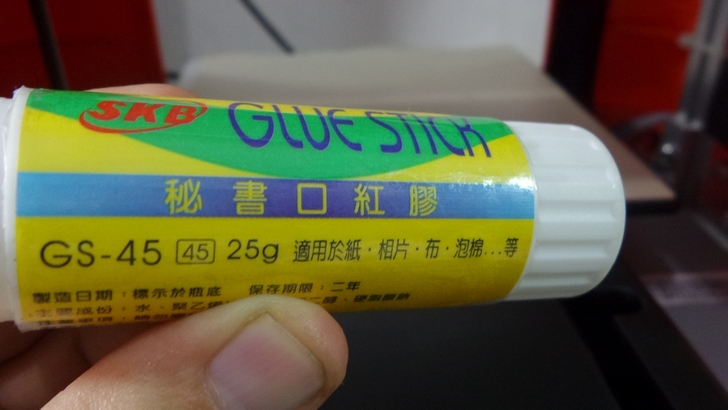 【▼】貼好平台貼布後,建議在列印區塗上口紅膠讓PLA線材加強支撐。