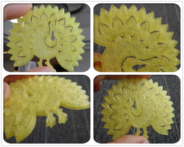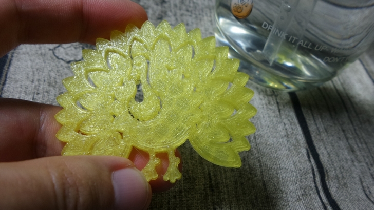 【▼】有水杯當然也要來列印個杯墊,這次選用的是孔雀杯墊,列印出來的成品真的很漂亮,刻痕紋路都很明顯,若不是列印平台限制在150x150x150mm,小編還真的想列印鍋墊來隔熱用呢!