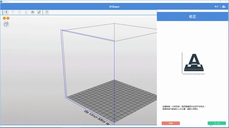 【▼】第一次使用前請先進行校正,配合XYZware軟體上的指示,一步步完成列印的前置作業。