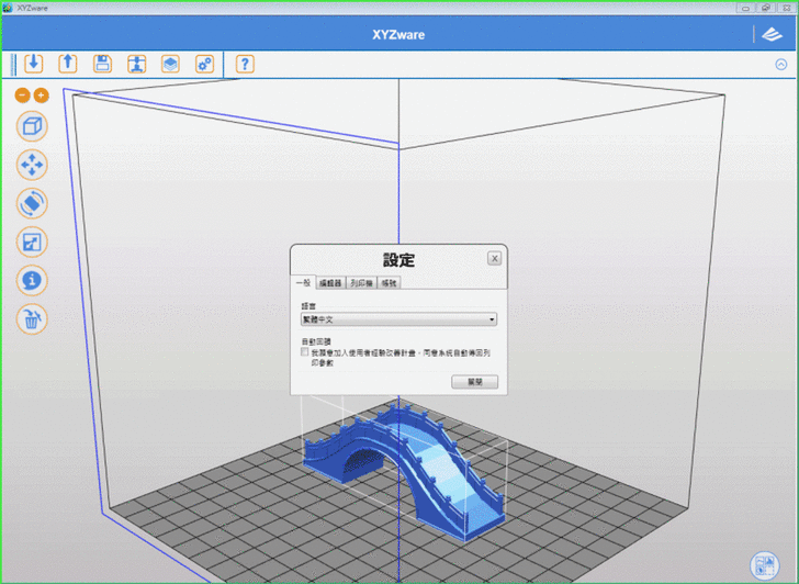 【▼】而XYZware本身也有自己的設定,包凡語言、自動訊息回饋、顯示單位、列印機選擇、模型預覽顏色與使用者帳號等。