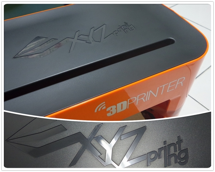 【▼】da Vinci Mini主體現身,討喜的橘黑互搭,外殼並印有白色3D PRINT字樣,外觀尺寸為400 x 336 x 362mm,重量為一個女生也拿得起的8公斤,正上方印有XYZprinting的Logo,最令人驚喜的是還提供無限Wi-Fi列印,讓您無所不印。