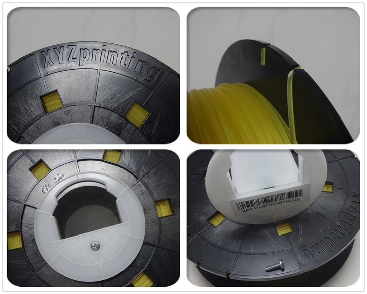 【▼】da Vinci Mini隨機附贈的PLA線材,一卷為600g,顏色隨機不能選,白色部分為線材中心環,出廠前已安裝於線材上。