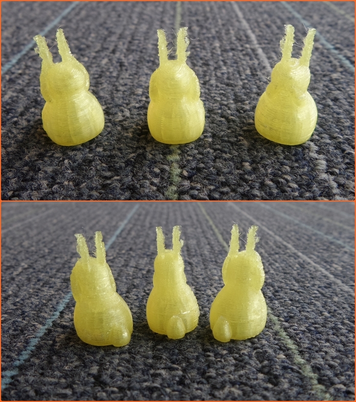 【▼】兔子三兄弟,這是以標準外殼、輕量的3D密度、列印厚度0.3cm完成的作品,若噴上不同的漆,將更有兔兔拜年的感覺。