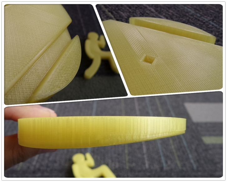 【▼】首先先來看看基座的部分,若原始放置手機的凹槽太窄,可透過XYZmaker 重新3D建模,這邊又要再提醒大家了,前面列印的作品都不厚,所以口紅膠沒抹均勻,其實影響程度還好,不過若是印較為厚的作品,若一開始不均勻,到後面的累積誤差就會越來越大,所以可以看見小編列印出的作品不是平面的,還好體積面夠大還不致於影響小編放置手機的作用。