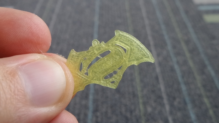 【▼】最後要和大家告知的是XYZware顯示什麼就印什麼,所以一定要注意不能懸浮,若有懸浮一定要有支撐,以這個蝙蝠俠大戰超人的Logo來說,這看似簡單的東西,小編可是印了兩次才完成。