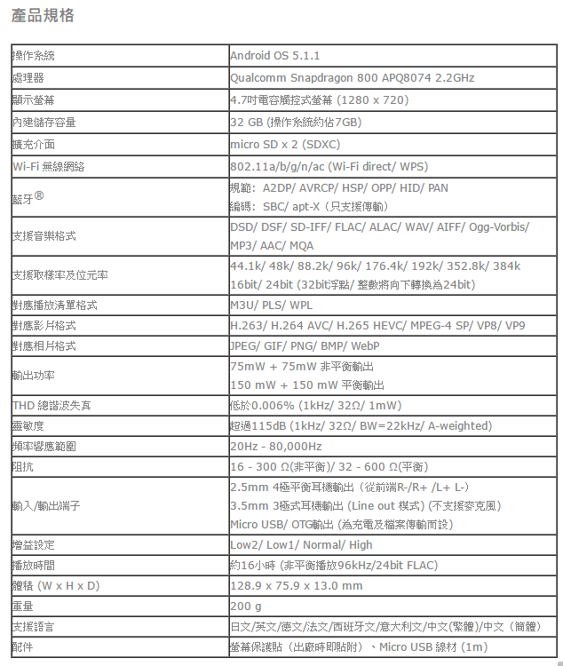 ▲2個micro SD 設計,加上原有的32GB,最高可支援到432GB的容量,不用怕高解析音樂放不下。此外,也支援藍牙、WIFI與AptX。