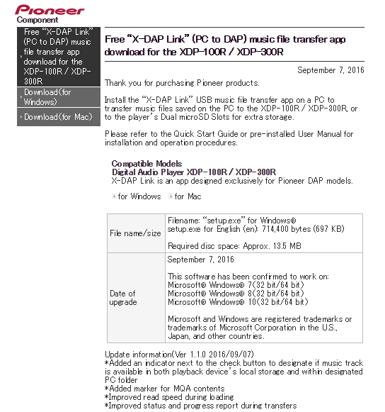 Pioneer XDP-300R可與PC跟MAC連接,需先上網下載軟體。