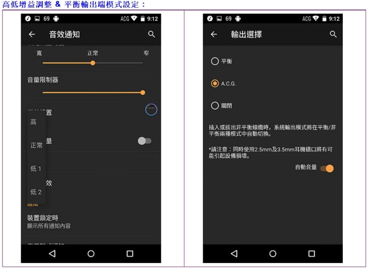聽感 : (開啟A.C.G模式、高增益模式)