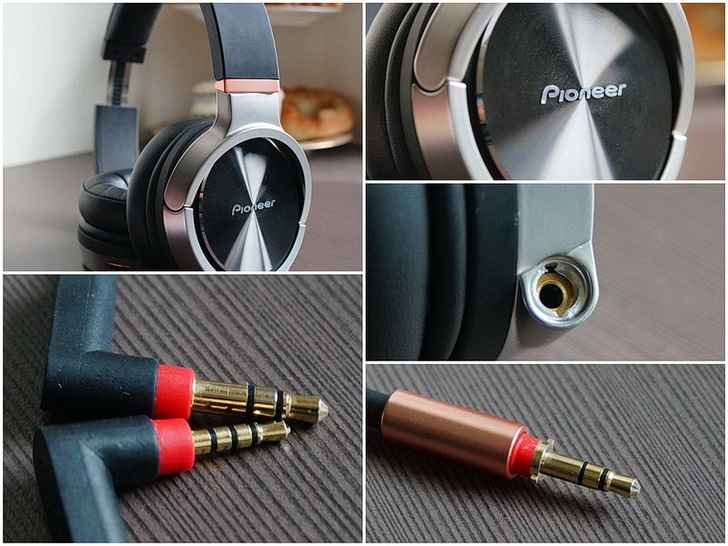 如果說播放機走的是低調沈穩路線,耳機就高調許多了,耳罩外殼表面的同心圓紋路讓耳機看起來光芒四射,耳機的耳罩在垂直軸上可做90度旋轉,在水平軸上也可做小角度的調整,可讓耳罩服貼於各種臉型,增添配戴舒適感。剛提到耳機音源線是活動的,廠商很貼心的在端子口設有固定栓設計,可避免耳機線因拉扯而脫落。我把3.5mm接頭與2.5mm接頭放在一起,大小粗細3節4節,應該看得出差別吧。