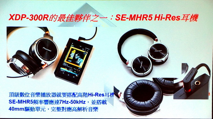 有了好的音樂來源,有了好的播放器,如果缺了好的耳機實在太可惜,Pioneer推薦他們自家的SE-MHR5耳機與XDP-300R搭配,不是說其他的耳機就一定不好,只是這隻耳機有經過Hi-Res Audio認證,也可以提供四極平衡輸出,搭配XDP-300R正是一個完整的組合。