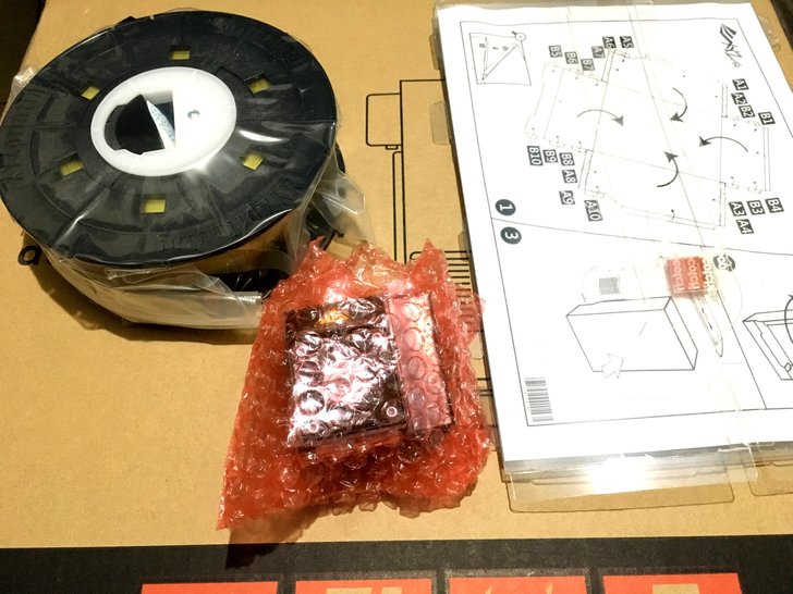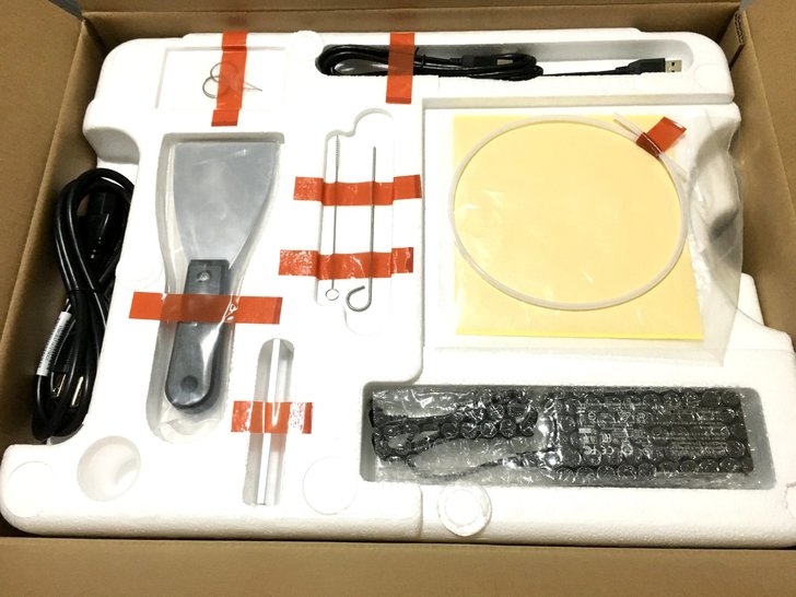 配件的部份有usb線、電源、列印頭清潔組、入料導管、列印墊等。