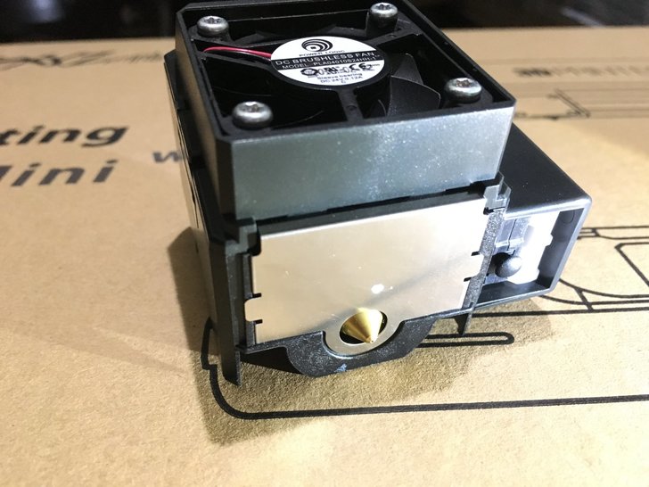 列印頭要注意金黃色的噴嘴是出料的地方,所以在列印或是在入、退料時溫度約兩百度相當高,所以要小心千萬不要碰到,而其他塑膠的部份還好。