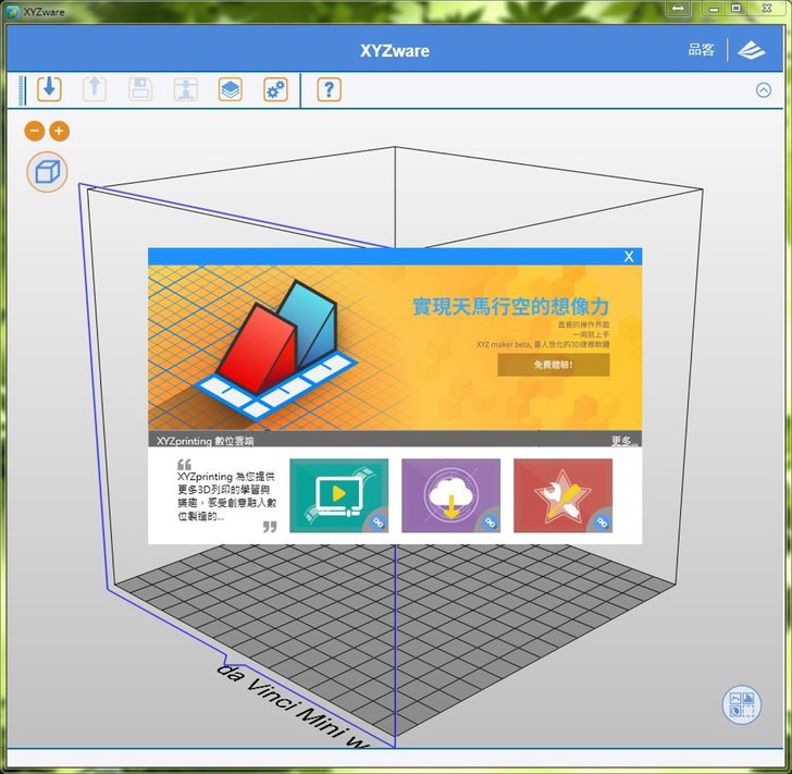 接著就來安裝列印軟體XYZware,首次記得更新韌體、列印頭校正、Z軸校正,官方也有教學影片。