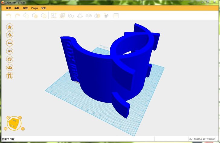 XYZmaker是基本的3D編輯軟體,所以也可以用他來編輯,上圖是一個手機架,背後刻了我的英文名字。