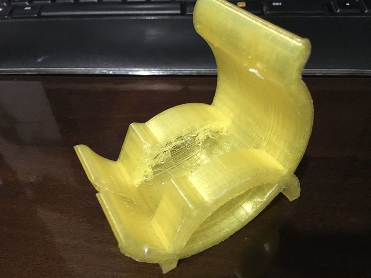 不過不能怪列印機,因為軟掉是模型設計關係,懸空的部份應該要有些許支撐,或是在列印的支撐選項打勾;