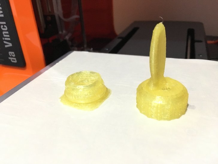 另一個是在做圖的時候瓶蓋跟瓶口是作完全密合,忽略了列印出來的時候可能有誤差,由其實我這次品質設最低跟印最快,然而列印出來的產品是有硬度,不像一般外面瓶蓋的軟質塑膠有彈性……所以可以看到瓶蓋跟瓶口沒辦法轉到最底……這種在乎細節的,列印品質還是注重一點比較好Q_Q