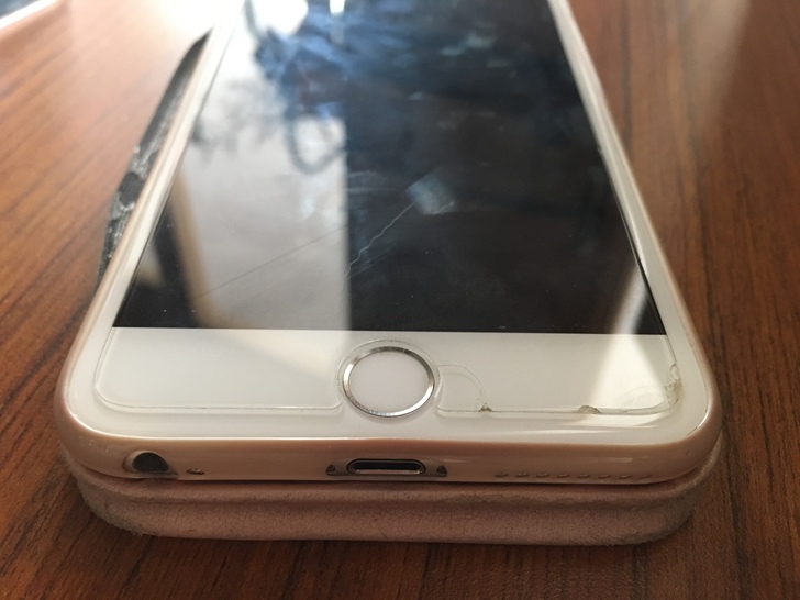 在還沒換保護貼之前,我的手機玻璃保護貼是相當恐怖的。他是很一般的便宜玻璃保護貼,你可以很清楚地看到他是非滿版的玻璃保護貼,而且邊邊角角非常的脆弱,破損情況也很嚴重!