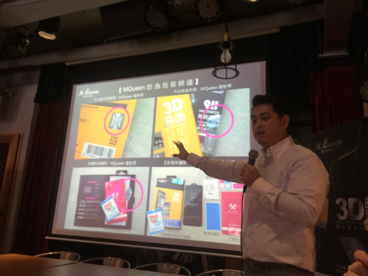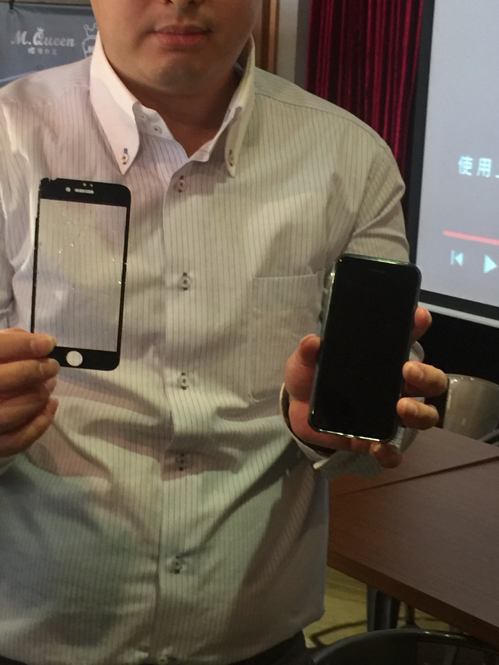講到這邊,主講人悲從中來,說現在的消費者觀念其實都不太正確。玻璃保護貼存在的目的應該是「不慎將手機摔落地面時能夠先接觸到地面碎裂,進而保護底下的手機螢幕不要裂開」,但是消費者卻常常誤認為「買了鋼化玻璃保護貼就不會破」,這真的是大大大錯誤,也讓廠商大大大困擾!