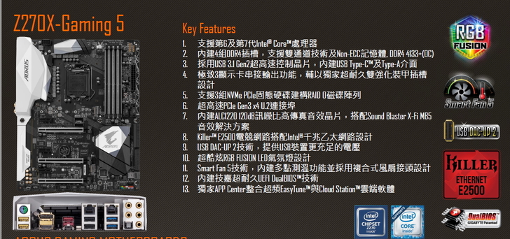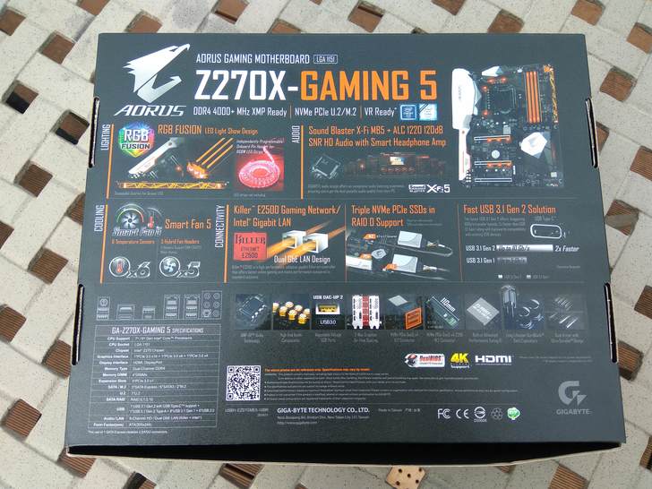 ▲準備開箱的AORUS Z270X-Gaming 5主機板規格。