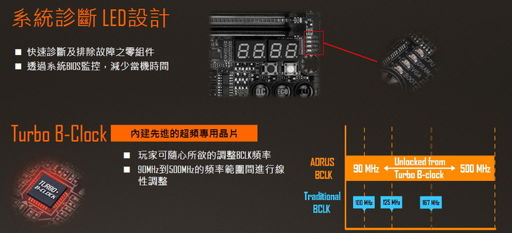 4、GIGABYTE AORUS Z270X-Gaming 5超頻設計與偵錯裝置皆容易使用。