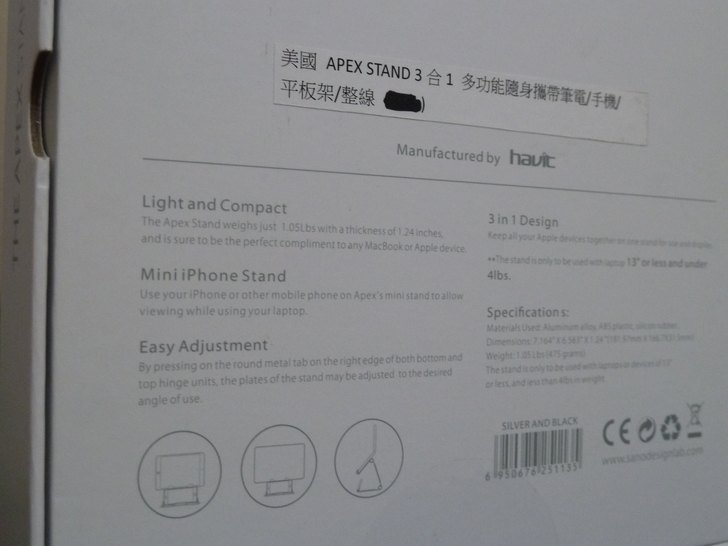 簡約素雅的包裝紙盒設計來襯托高質感的鋁合金apex Stand筆電架,真的很耐看喔!
