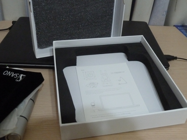 打開包裝盒,裏頭還有崁海綿將商品固定,筆電架重疊處也有包覆保護,