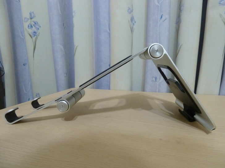 此款筆電架有別於他牌筆電架就在於使用的是雙軸心設計,也就是角度變化的關鍵處所在,