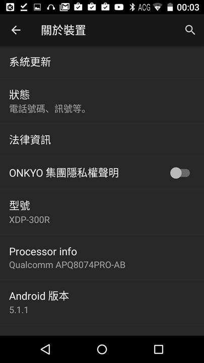 ▲ Pioneer XDP-300R音樂播放器使用Android 5.1.1作業系統。