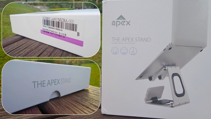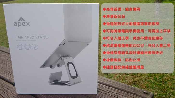 【▼】APEX STAND固定架的包裝彩盒有濃濃的蘋果風,不但潔白無暇更帶有簡單好操作的直覺性。封面的產品,雖然把蘋果給變不見了,但光看外型一眼就能辨別出是MacBook與iPhone,眾多特點中,最重要的就是符合人體工學,讓使用者能舒適的使用3C產品!