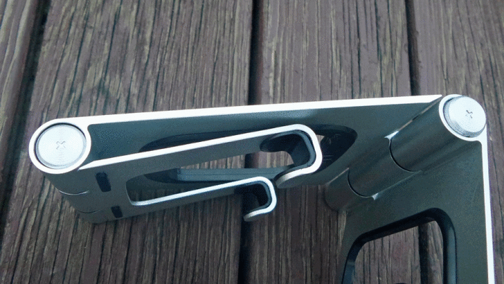 【▼】前面有提到,APEX STAND是有段數的調整角度,不過當收納到最底時並沒有卡住,所以往往不小心拉到就會回到第一段數約20度的位置,另一面要開闔就會受到限制,提供給消費者知悉。