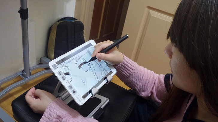 【▼】APEX STAND另類用法II,友人拿來當繪圖板的立架,不用用手支撐平板,畫得更穩更逼真。