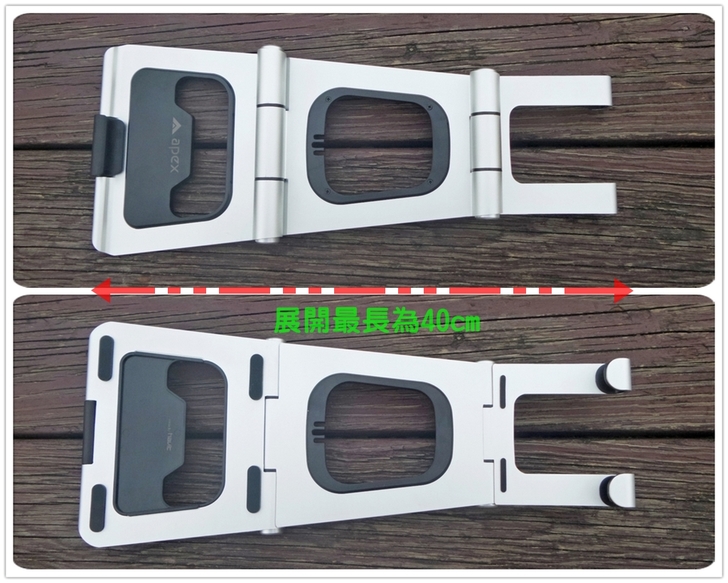 【▼】APEX STAND完全展開的正反面一覽,展開最長為40cm,此型態也很適合放進一般後背包中,相對厚度就會變小,不過就沒辦法放進旅行袋中了。