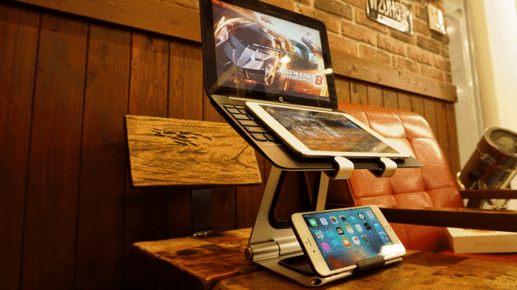 放眼望去,目前市面上賣的平板架還是手機架都是單一尺寸,手機架大都在6吋以下,而平板架則是7~10吋,筆電架更是難以見到,去三創買筆電架,賣場人員還說筆電就筆電,哪有那種東西,實在是大家都忽略了一個好的固定架的價值。今日APEX STAND一次滿足手機、平板、筆電的擺置,透過APEX STAND的多段式延展角度,可將不同裝置的螢幕以水平視線作觀看,不但能避開螢幕反光,符合人體工學的機構設計,更是姿勢不良造成痠痛的終結者。APEX STAND本身有相當不錯的穩定性,同時放上三種裝置也不搖晃,在放置筆電處,也特別加上橡膠,預防機身相互被刮傷,但放手機的9.5mm的固定槽內沒有設計橡膠,這部分可以稍作改良,而在支架後方還有整線凹槽,能讓傳輸線與充電線能夠整齊的收納。