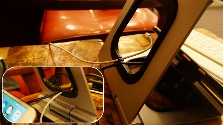 【▼】多個裝置免不了要充電或傳輸,這時APEX STAND整線凹槽就發揮極大作用,讓線條條分明不打結,